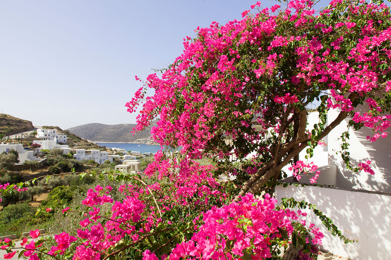 Ο κήπος με τις σκιασμένες γωνιές του προσφέρει ιδανικά σημεία για ξεκούραση, διάβασμα ή απλώς για να απολαύσετε τη θέα και το κυκλαδίτικο φως.